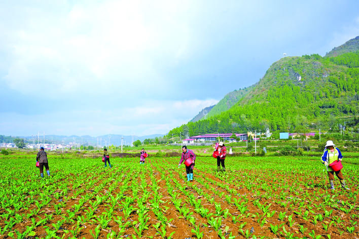 時下,正是雪里蕻管護的時節,在岑鞏縣水尾鎮馬家寨村雪里蕻種植基地里,來自周邊的村民提著裝滿肥料的水桶,將有機肥均勻地撒在土壤表面,為幼苗生長筑牢根基。 -